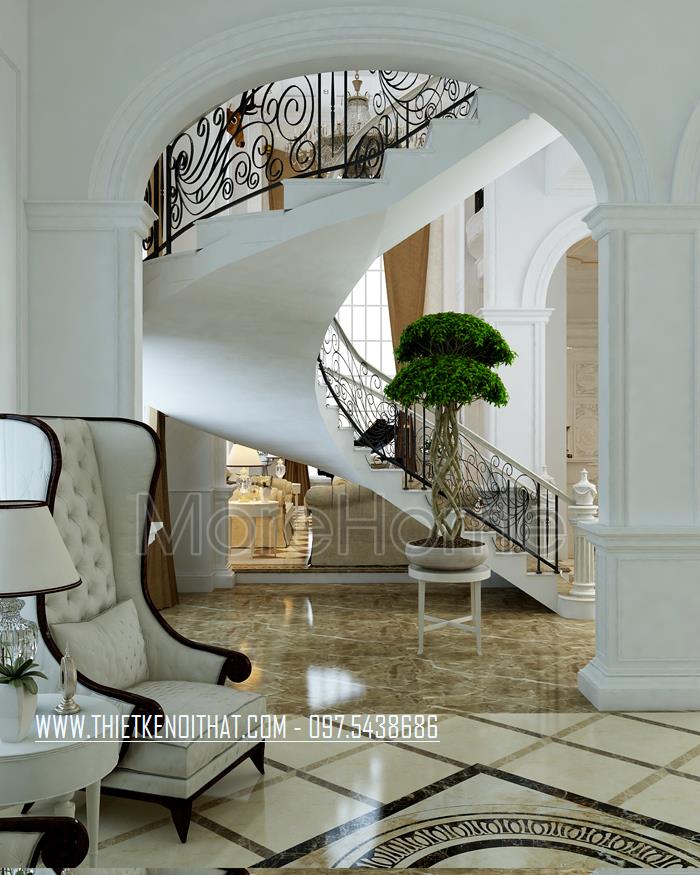 Bạn có nhu cầu Thiết kế cầu thang gỗ - sắt tại thự tân cổ điển tại An Giang vui lòng liên hệ MOREHOME để được tư vấn: 0975438686