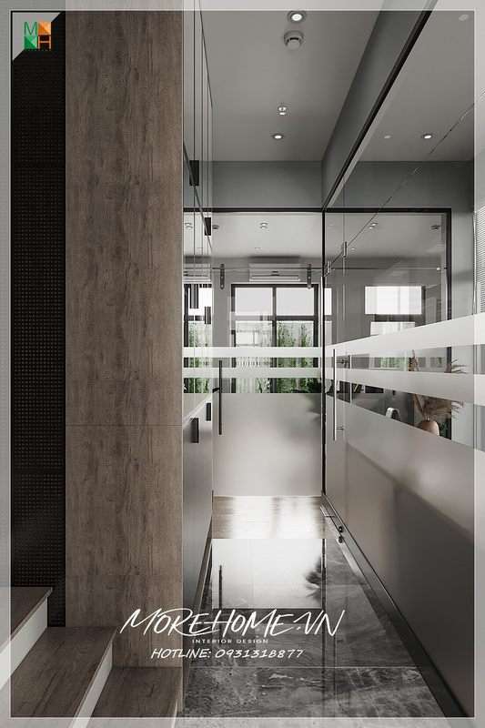 Cửa kính dùng để ngăn chia các phòng làm việc, đồng thời giúp giảm tiếng ồn tăng hiệu quả làm việc cho nhân viên.