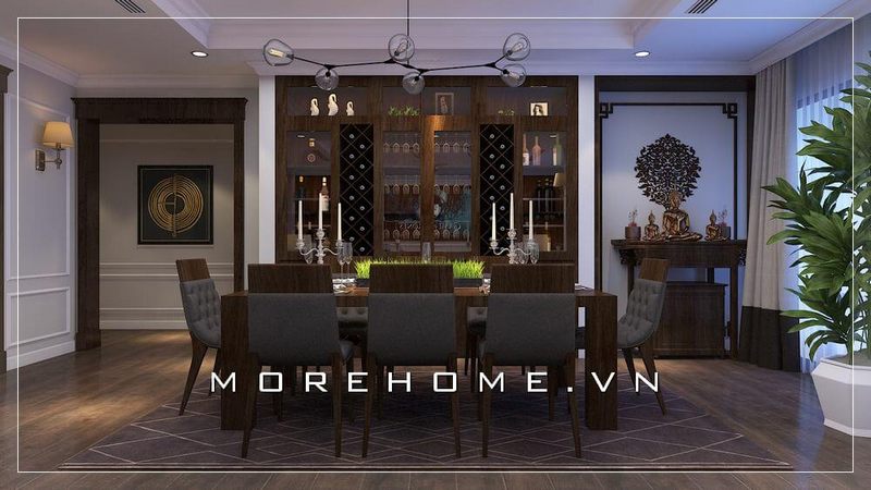 Nội thất phòng ăn cho nhà biệt thự cổ điển được thiết kế sang trọng và cao cấp.