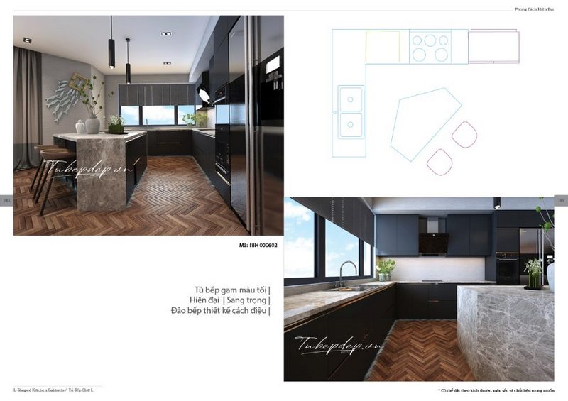 Kiến trúc sư đã thiết kế một phòng bếp gam màu tối để tạo nên sự sâu sắc và vẻ đẹp bền bỉ, vượt qua thời gian và phù hợp với phong cách hiện đại.